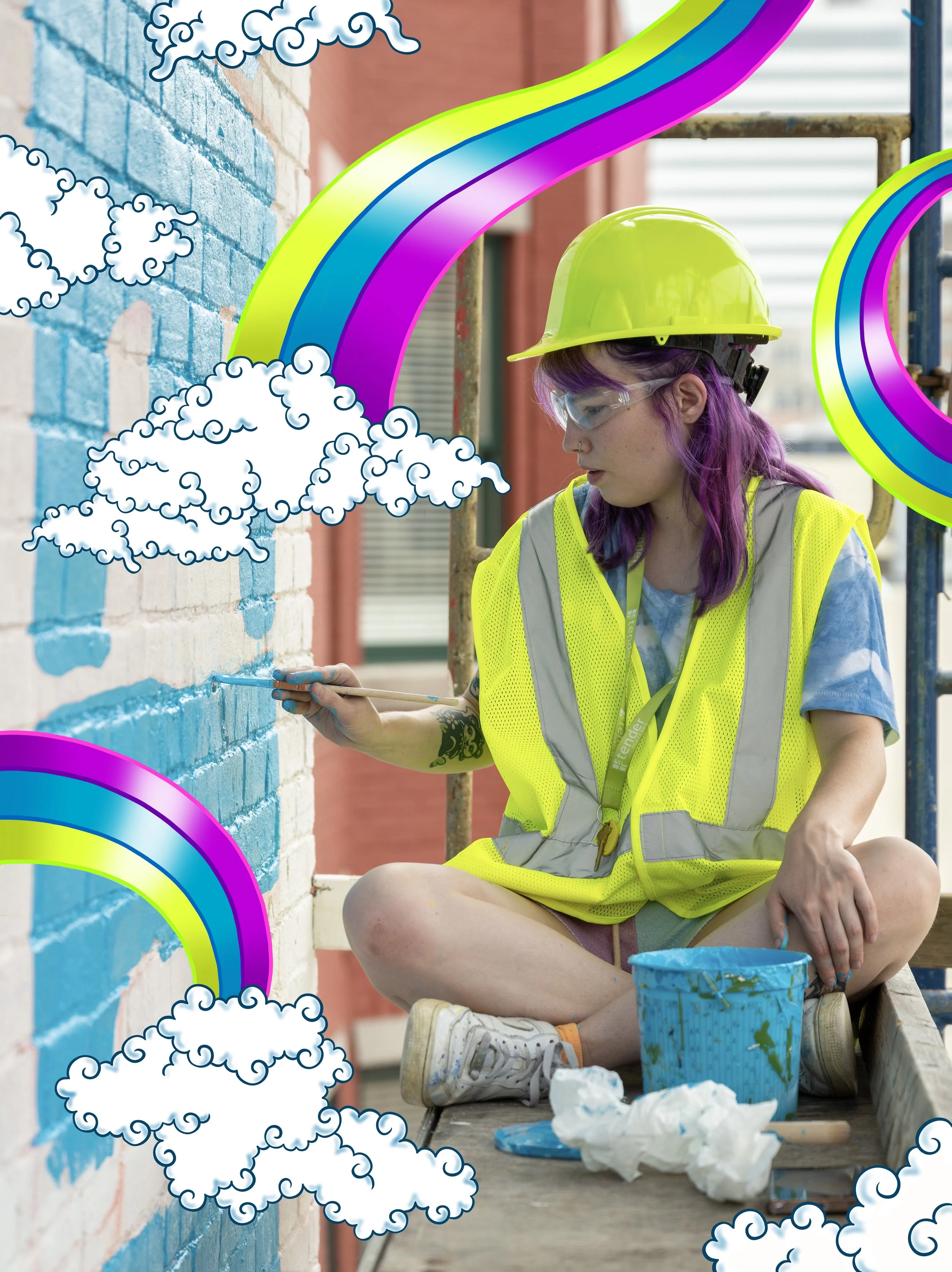 Growing up, Emily was glued to the television. Watching cartoons like the Powerpuff Girls and the Simpsons, Emily was mesmerized by the bright colors and bold lines, and would often draw her favorite characters. Today, Emily combines the comfort that comes with these nostalgic colors and shapes, with a soft, blended quality to her works that enhances the dream like state. The characters and figures that find themselves in Emily’s work exist in a space between, somewhere that is here but also nowhere. Merging both modern and nostalgic imagery, Emily invites viewers into her whimsical world.